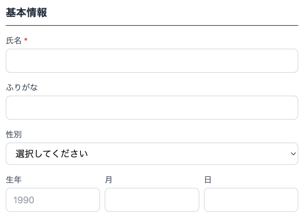 「性別」と「生年月日」は選択式です。