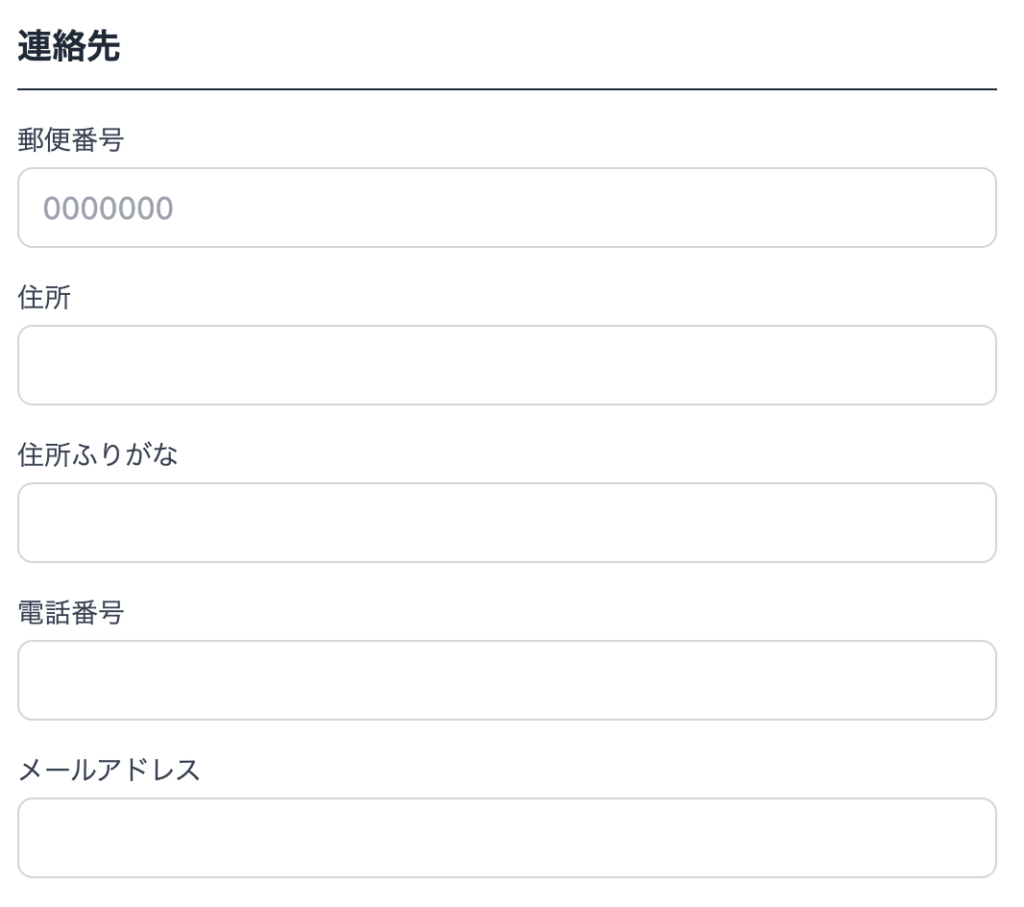 「郵便番号」「住所」「住所ふりがな」「電話番号」「メールアドレス」まで正確な情報を入力しましょう。