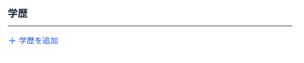 「+学歴を追加」を押して「年」「月」「学歴内容」を記載してください。