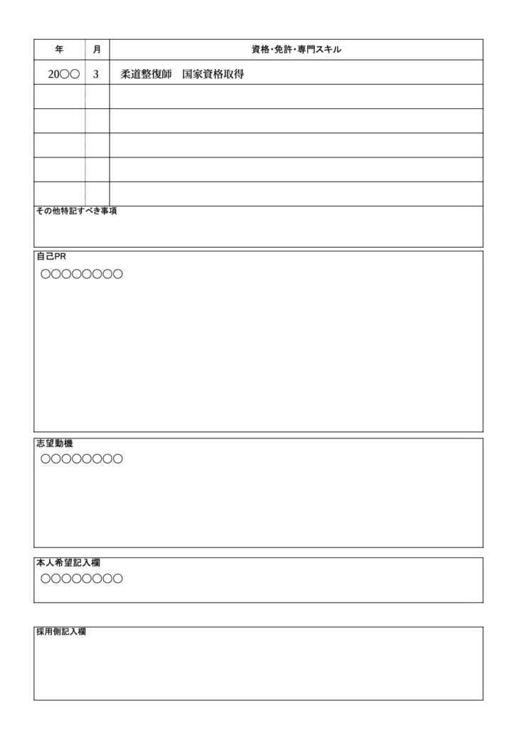 - 例: 2025年 3月 柔道整復師 国家資格取得